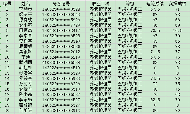 2024年10月14日第42批養(yǎng)老護理員初級認(rèn)定人員成績公示