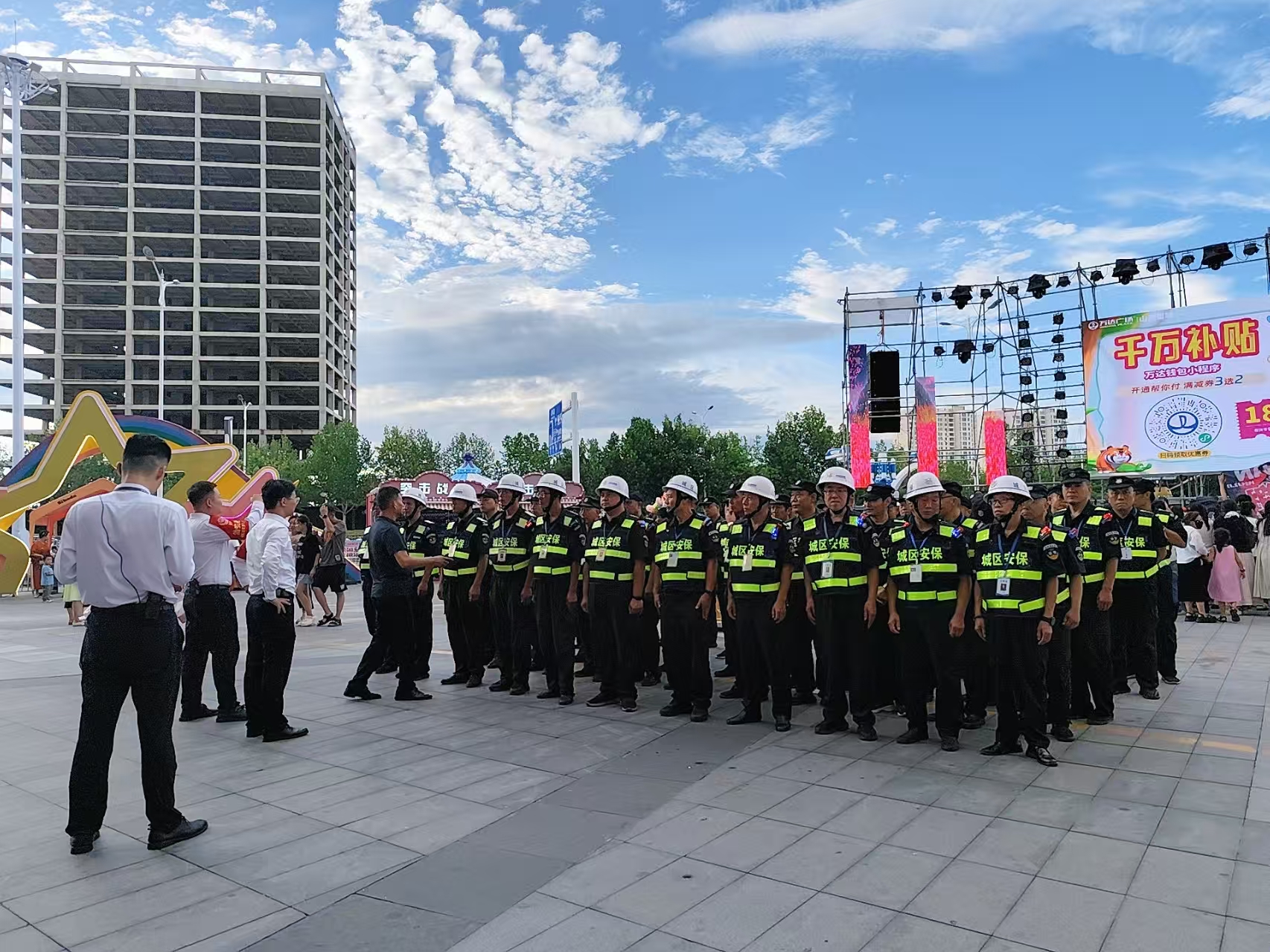 活動期間,城區(qū)保安人員按照既定方案,每天晚上6點(diǎn)到崗到位,配合公安、消防等部門做好秩序維護(hù)、交通疏導(dǎo)及服務(wù)保障等工作。出入口崗位的保安負(fù)責(zé)引導(dǎo)群眾有序進(jìn)出,舞臺周邊的保安重點(diǎn)維護(hù)觀眾秩序,防止擁擠、踩踏等危險(xiǎn)情況發(fā)生。盡管每天晚上工作時(shí)間長達(dá)6小時(shí),他們時(shí)刻保持警惕,沒有絲毫放松,F(xiàn)場人流量一度突破萬人次,但執(zhí)勤保安始終用規(guī)范的動作、耐心的態(tài)度引導(dǎo)人流,以嚴(yán)謹(jǐn)?shù)墓ぷ髯黠L(fēng)和飽滿的精神狀態(tài)為活動保駕護(hù)航。
